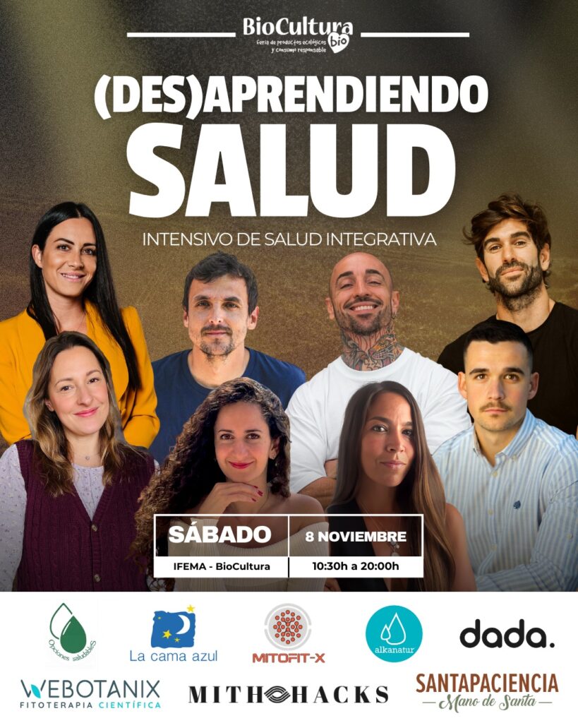 El sábado 8 de noviembre, dentro de la programación de BioCultura Madrid 2025, se llevará a cabo una jornada con un título muy ilustrativo: “(Des)aprendiendo salud”. Participarán un montón de expertos con ponencias harto explicativas y sugerentes para cambiar nuestros hábitos vitales hacia un mundo más armonioso, saludable y rebelde. No te la puedes perder. Todos son primeros espadas en lo suyo. Lo que comenten te hará volar la cabeza.